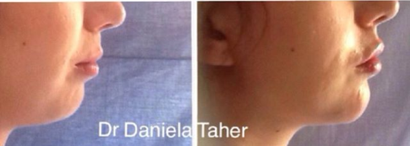 In cazul fiicei s-a optat pentru augmentarea doar a buzei superioare pentru a restabilit simetria si a scurta distanta dintre nas si conturul buzelor.